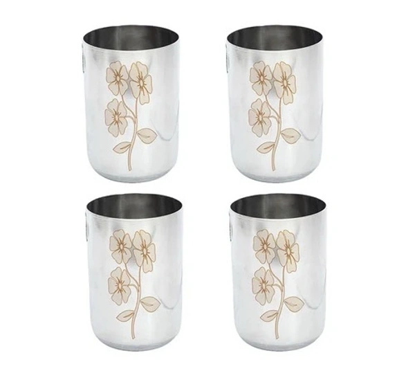 Apple Damru/plain Glass Stainless Steel (silver) Water/ Juice Glass (pack Of 6)