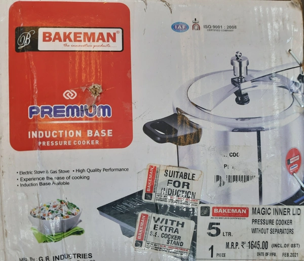 Bakeman magic inner lid induction base Pressure Cooker without separators-5Ltrs.