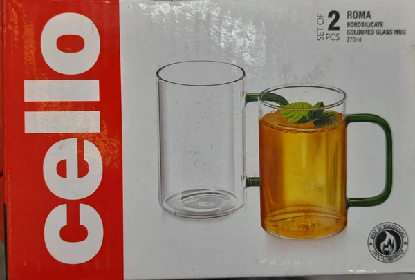 Cello roma borosilicate coloured glass 270 ml mug 2pcs pack