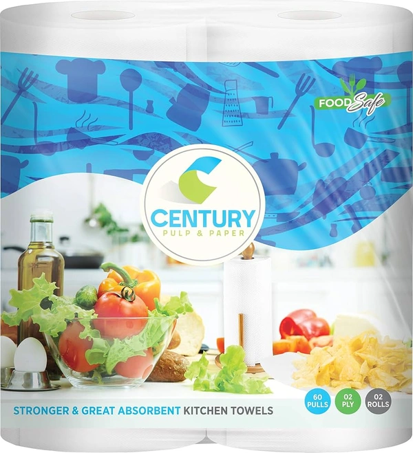 Century Kitchen towels (21 cm*22 cm, 2 ply, sheets per roll - 60n). 100% hygienic & food safe. No. of rolls 1 N