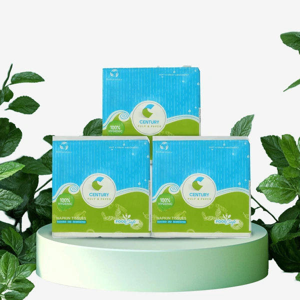 Century 100% Higienic Napkins Tissues. Soft and great Absorbent. (33cm * 33cm, 2 Ply) Net Qty. 50N