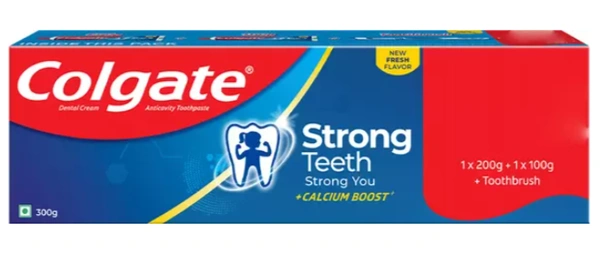 COLGATE STRONG TEETH TOOTHPASTE (200G+100G+TOOTHBRUSH) NET WT. 300GM