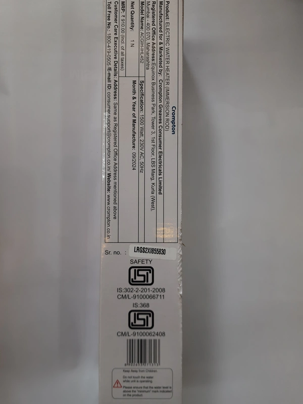 Crompton immersion water heater IHL-452-1500watts-2years warranty