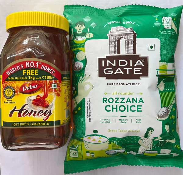 Dabur honey 1kg. FREE india gate rice 1Kg worth Rs. 108