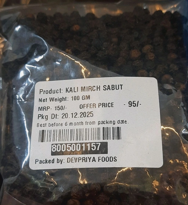 Devpriya Foods Kali Mirch Sabut 100gm.