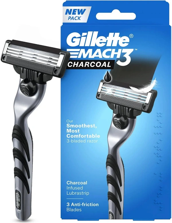 Gillette Mach 3 Shaving Razer for Men. Charcol Infused Lubrastrip. 3 Anti-friction blades. Net Qty. 1 N