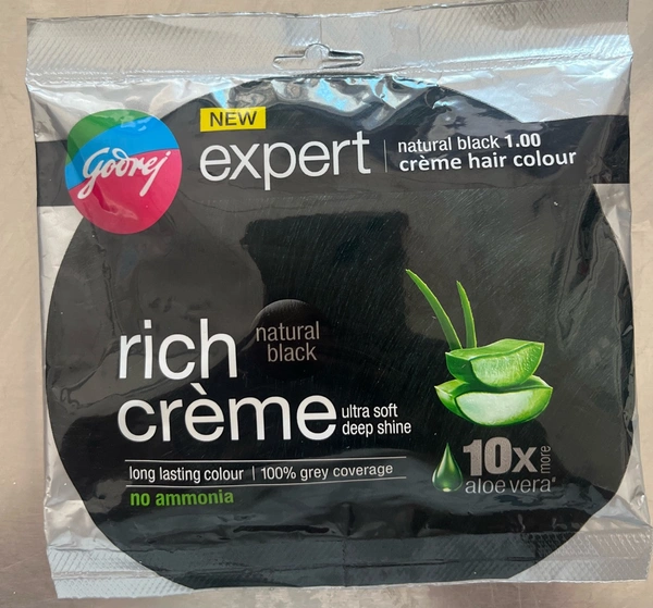 Godrej Expert Rich Creme Natural Black 1.00 Creme Hair Colour 20g+20ml