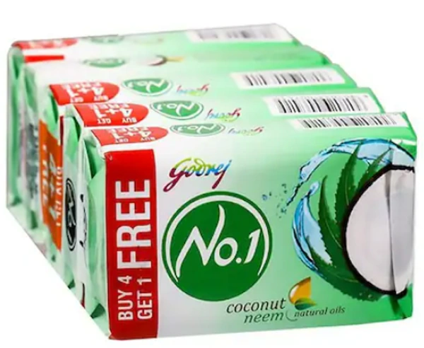 GODREJ NO.1 COCONUT NEEM BATHING BAR 4+1 FREE NET WT. 500G
