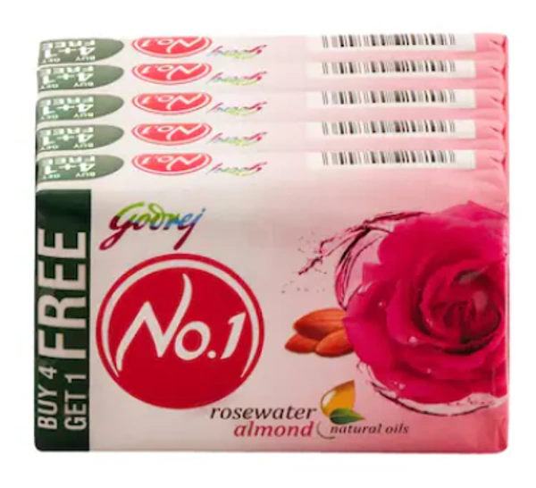 GODREJ NO.1 ROSEWATER ALMOND BATHING BAR 4+1 FREE NET WT. 500G