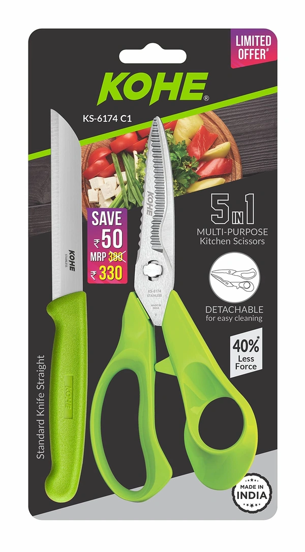 KOHE 5in1 multipurpose kitchen detachable scissors + knife set