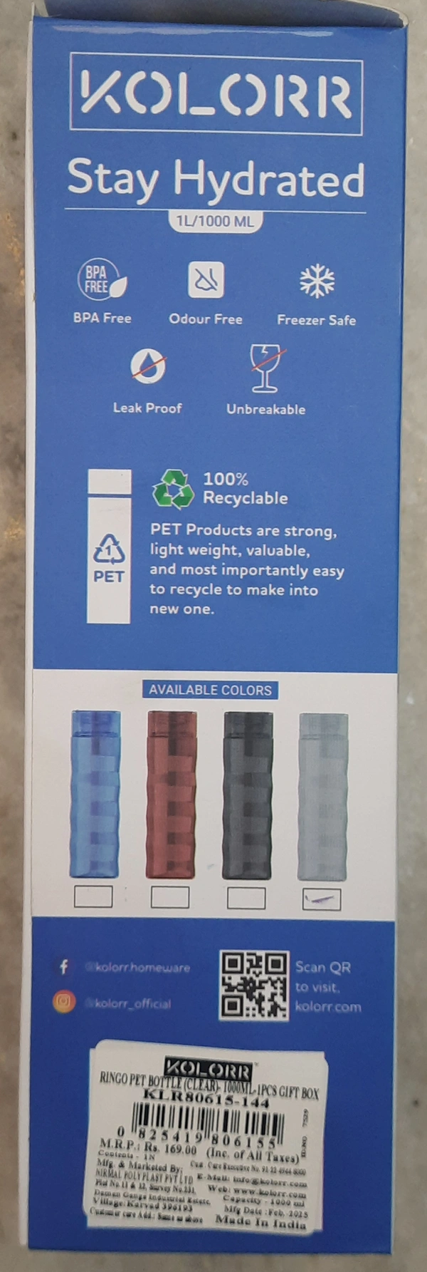 Kolorr stay hydrated ringo pet bottle (CLEAR)-1000ml-1U
