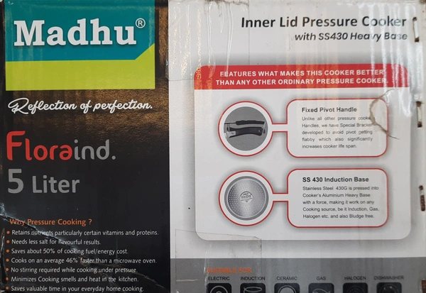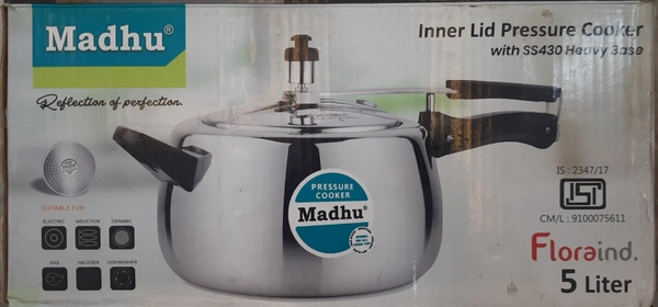 Madhu Floraind aluminium pressure cooker-5 Ltrs.-induction base-5 years warranty
