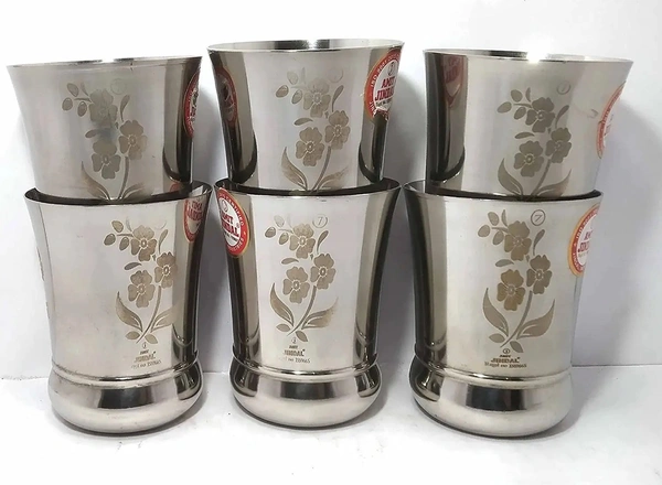 Meet Platina Glass Stainless Steel (silver) Water/ Juice Glass (pack Of 6)