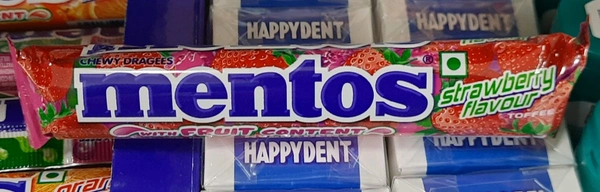 Mentos Strawberry Flavour TOFFEE Chewy Dragees 28.6gm.