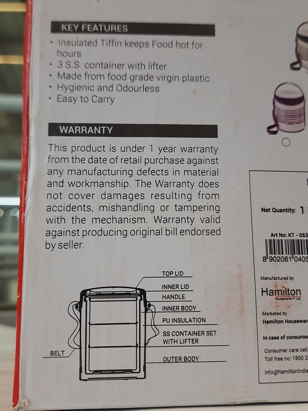 Milton thermoware econa 3 insulated tiffin- 900ml capacity