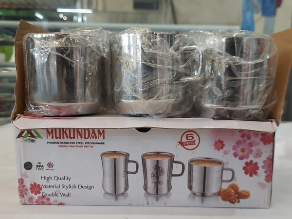 Mukundam premium S.S. Lazer double wall cup Set of 6 cups