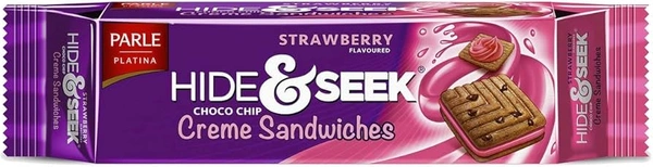 PARLE HIDE&SEEK CREME SANDWICHES STRAWBERRY BISCUITS 125G