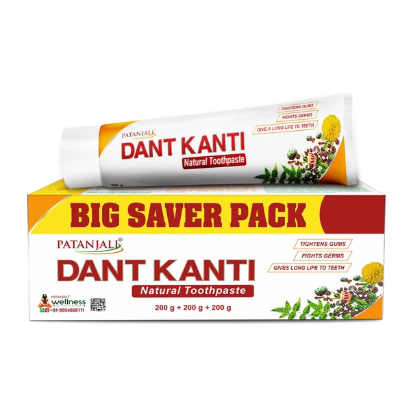 PATANJALI DANT KANTI NATURAL TOOTHPASTE ( 200G+200G+200G) NET WT 600 GM