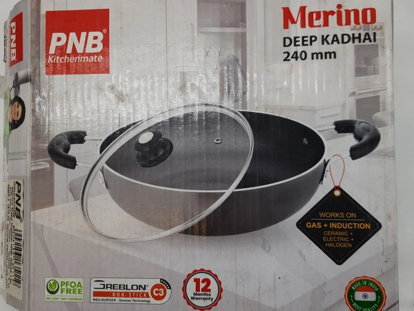 PNB merino deep kadhai with glass lid 240mm-12 months warranty