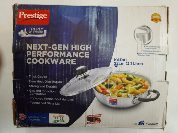 Prestige tri ply splendor dia. 22cm kadhai with glass lid (2.1ltrs.)