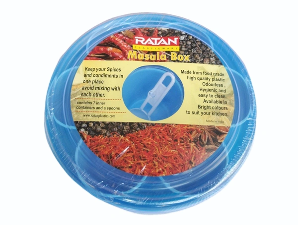 Ratan plastic masala box-1400ml-Contains 7 inner boxes & 1spoon ( multicolor )- you may recieve any color