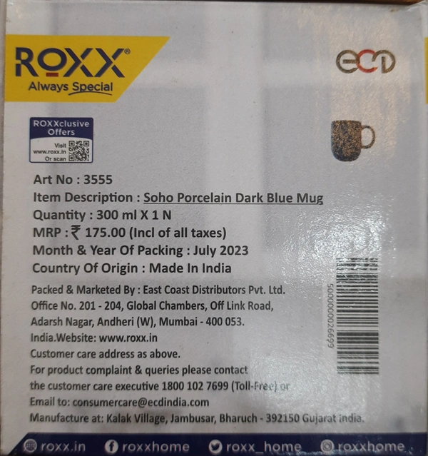 ROXX 3555 Soho porcelain dark blue mug 300ml 1N