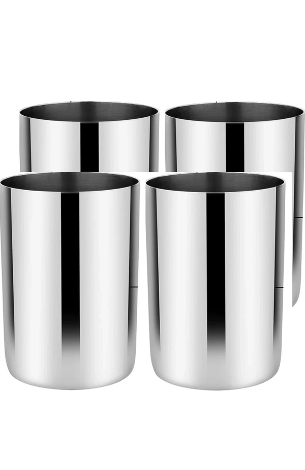 Saffron Glass Stainless Steel Plain (silver) Water/ Juice Glass (pack Of 4)