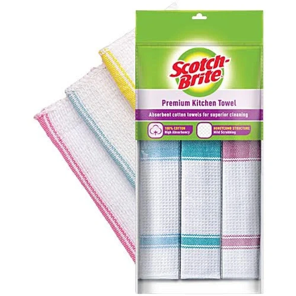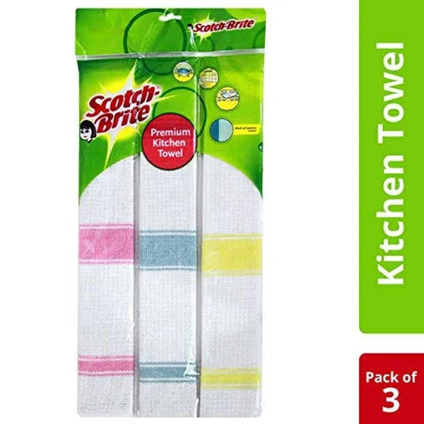 Scotch Brite Premium Kitchen Towel. 100% Cotton Hi Absorbency, Net Qty. 3 N