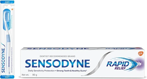 SENSODYNE RAPID RELIEF TOOTHPASTE (1N*80G + 1N TOOTHBRUSH) NET WT 80 GM