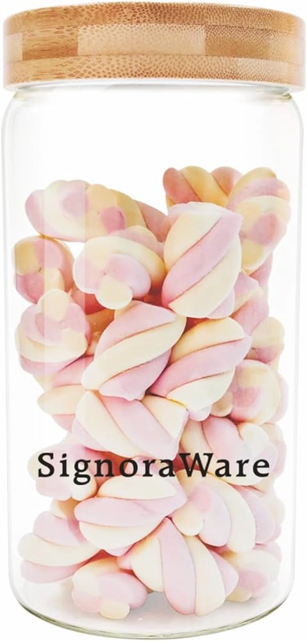 Signoraware glaze glass jar 900ml bamboo lid