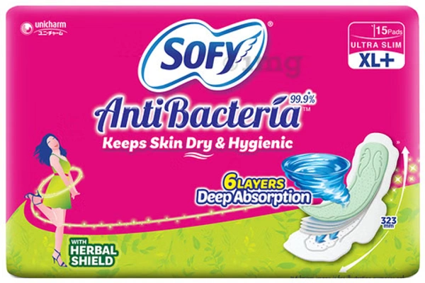 SOFY ANTIBACTERIA XL+ SANITARY PADS 15 PC