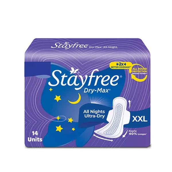 STAYFREE DRY MAX ALL NIGHTS ULTRA-DRY XXL PADS 14 PC