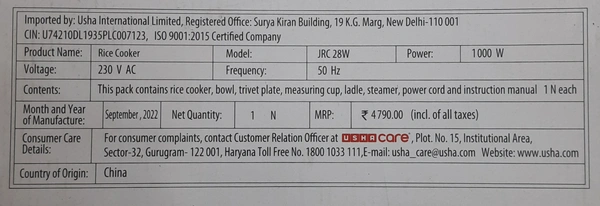 Usha rice cooker JRC 28W