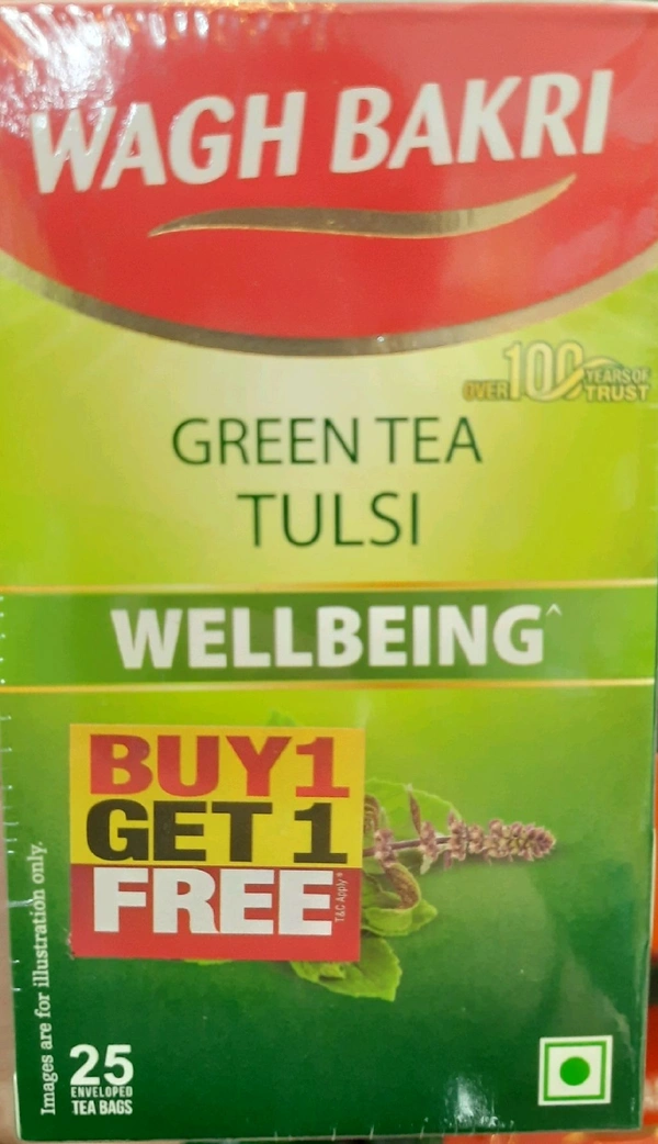 WAGH BAKRI GREEN TEA TULSI 25 Tea Bags (BUY 1 GET 1 FREE )