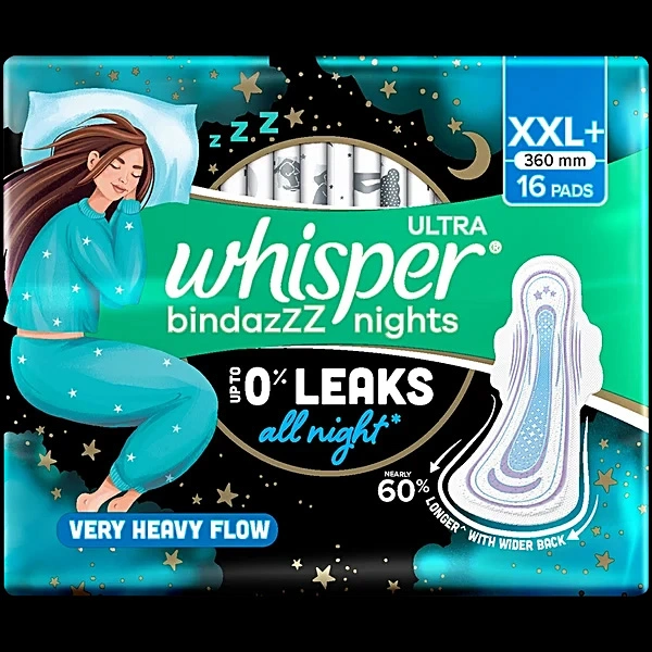 WHISPER BINDAZZZ NIGHTS XXL PADS 16 PC