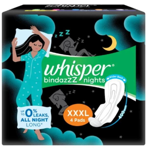 WHISPER BINDAZZZ NIGHTS XXXL PADS 4 PC