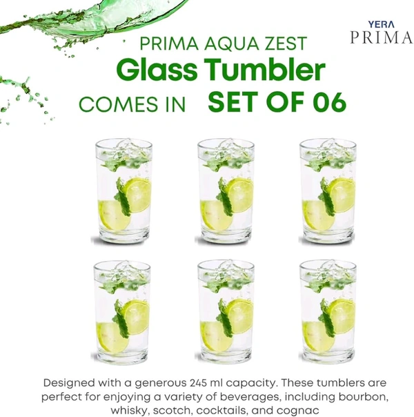 Yera Prima Aqua Glass Tumbler 245ml Pack Of 6